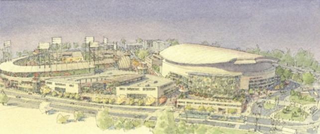 The City, teamed with Merritt Paulson, owner of the Portland Timbers and minor-league baseball team Portland Beavers proposed to turn Jeld Wen field (formerly Civic Stadium and PGE Park) into an all soccer stadium. This would have required the Beavers to relocate to a new stadium. The City/Paulson team proposed to move the Beavers to a new stadium in the Rose Quarter and team with the Portland Blazers/Vulcan Development (Paul Allen's development company) for a new sports/entertainment district. Their scheme demolished Veterans Memorial Coliseum.
