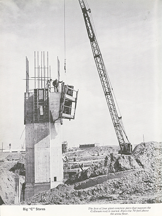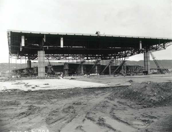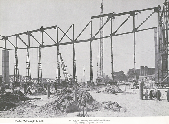 Memorial Coliseum's construction process was large scale, unique and amazing. It was an unprecedented engineering and construction marvel in the United States.