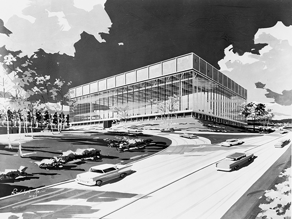 These are concept drawings by the Skidmore Owings and Merrill design team c1958 for Memorial Coliseum.
