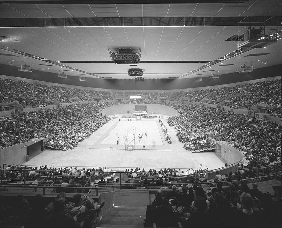 Art Hupy photographed Memorial Coliseum in 1961 and his photographs were published in the April 1961 issue of Pacific Architect & Builder Magazine.