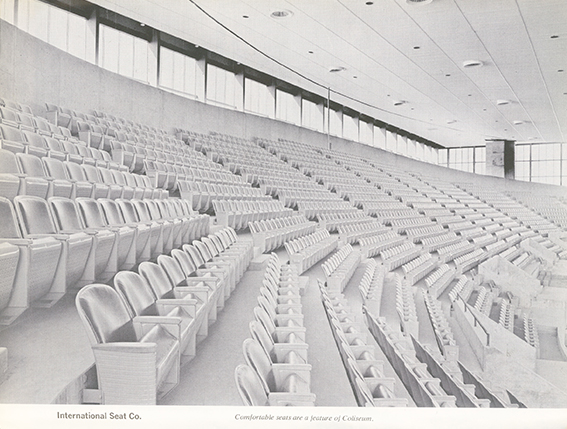 In addition to the photographs by Julius Shulman and Art Hupy for the April 1961 issue of Pacific Architect and Builder magazine, many photos were taken of the Coliseum that make the design intent and the historical value of the building clear. The bowl in the glass box, or the sensuous, curving form contained by a square box, are apparent in these photos. The arena being a unique light filled space with views to the outside are also clear. Historic photos confirm that Veterans Memorial Coliseum is an architectural masterpiece of international stature.